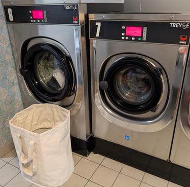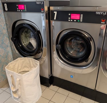 On Thursday, we left the mountains behind and pointed the camper toward Dresden. After days off-grid, we were desperate to do laundry and refill our water tanks. We found a laundromat outside the city, loaded up every machine we could find, and then checked into a camper site with all the amenities — including access to showers at the public swimming pool next door.