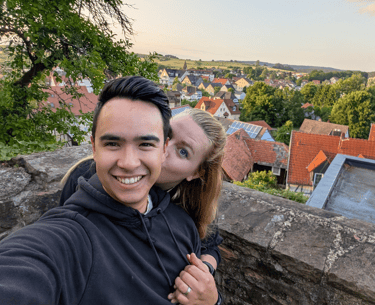 On day two, we drove via Winterberg to Wetter. We took a short hike in Winterberg, which was fun because Lennard had snowboarded there once—seeing it without snow was a different vibe. That evening, we parked up in Wetter, where the surroundings were beautiful. We ended the day with a lovely evening walk.